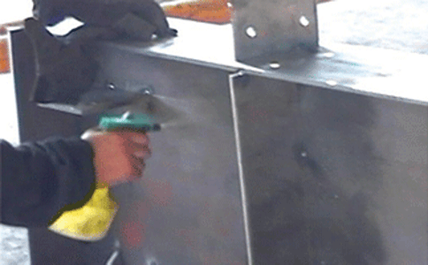 每公斤防飛濺劑可涂敷大約30平方米的金屬表面或者100米左右的焊縫。使用前后對比圖